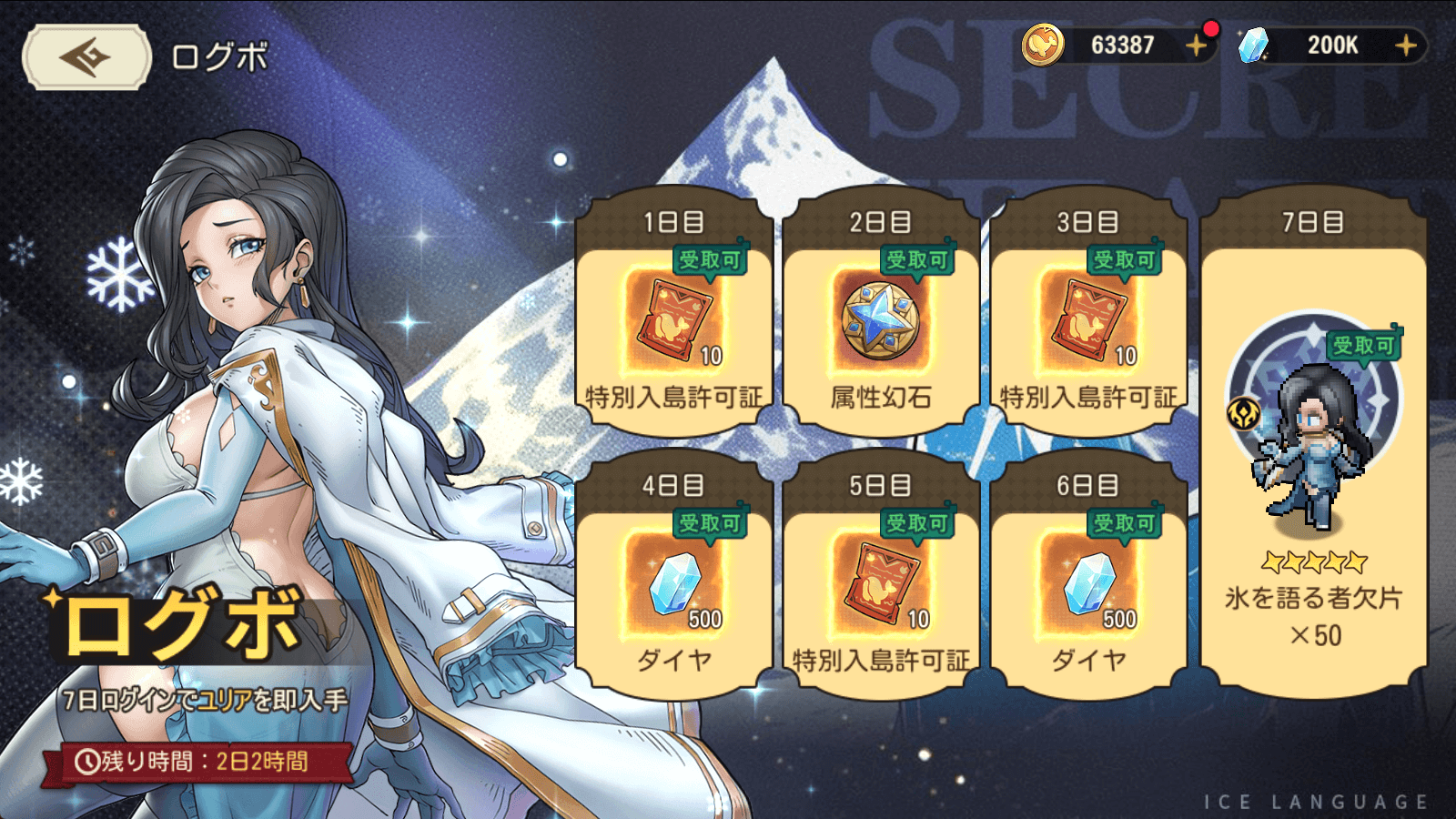 7日目に「氷を語る者・ユリア」1体を無料で獲得できます。