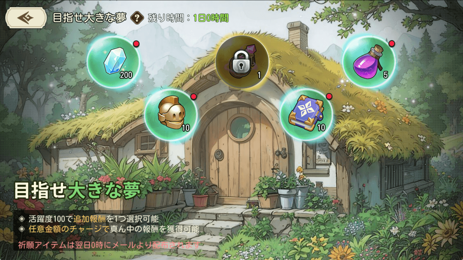 1.イベント期間中、每日通常報酬から1つを選んで祈願を行うことができます。