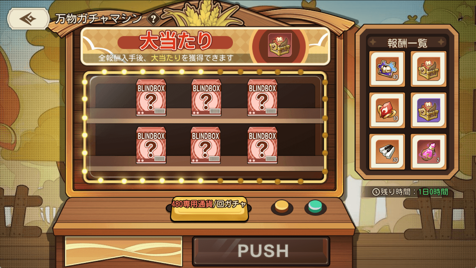 2.各アイテムは1回しか排出せず、万物ガチャマシンを最大6回回せます。