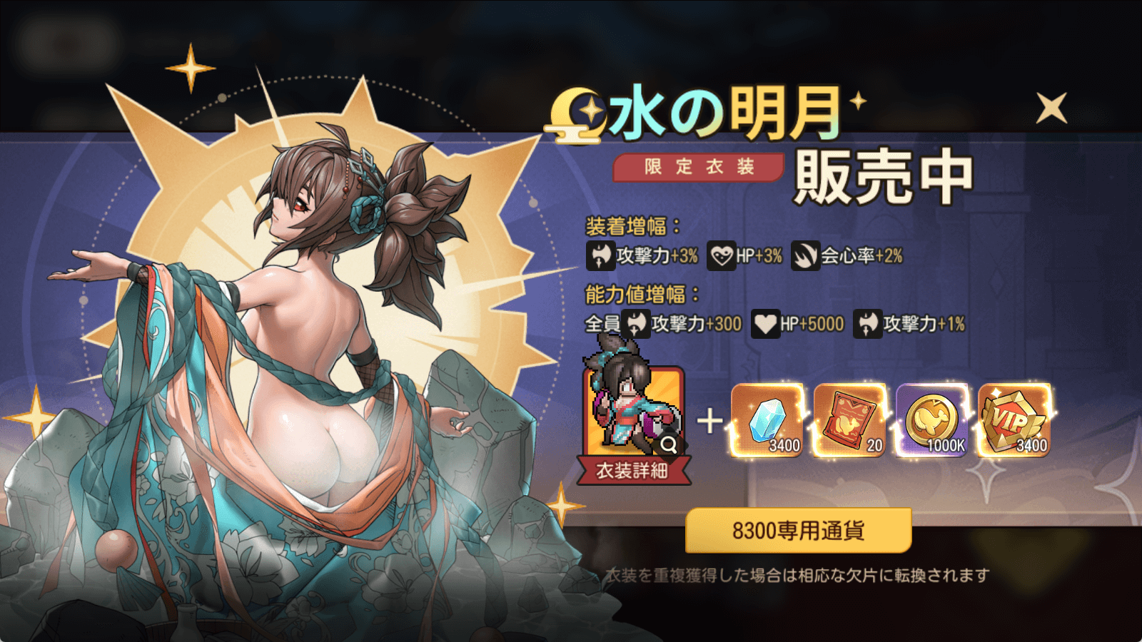 *イベント期間中、「霧幻の火・朔夜」を星6にアップさせ、星6の専用パックを購入する場合では、フレイム「新月の夜に」を獲得できます。