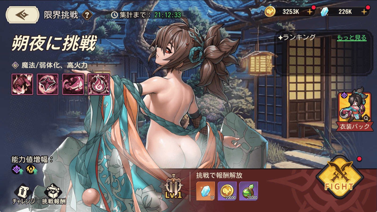 イベント期間中、毎日朔夜に挑戦できます。ダメージLvによって挑戦報酬が集計され、報酬を決めます。