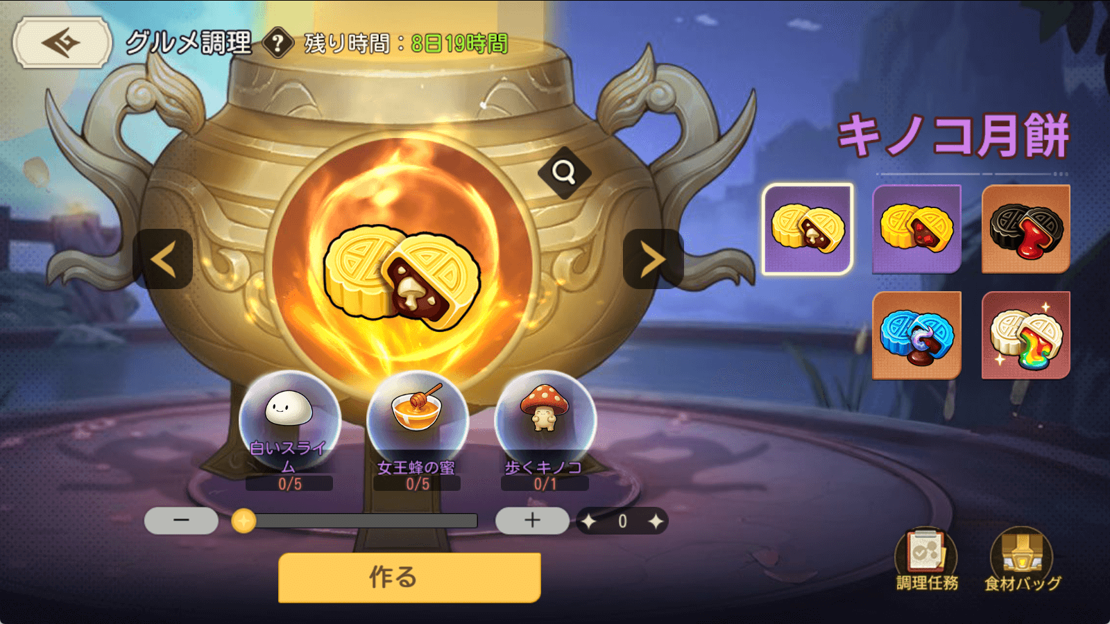 2.グルメを調理して調理任務を達成すると報酬を受け取れます。