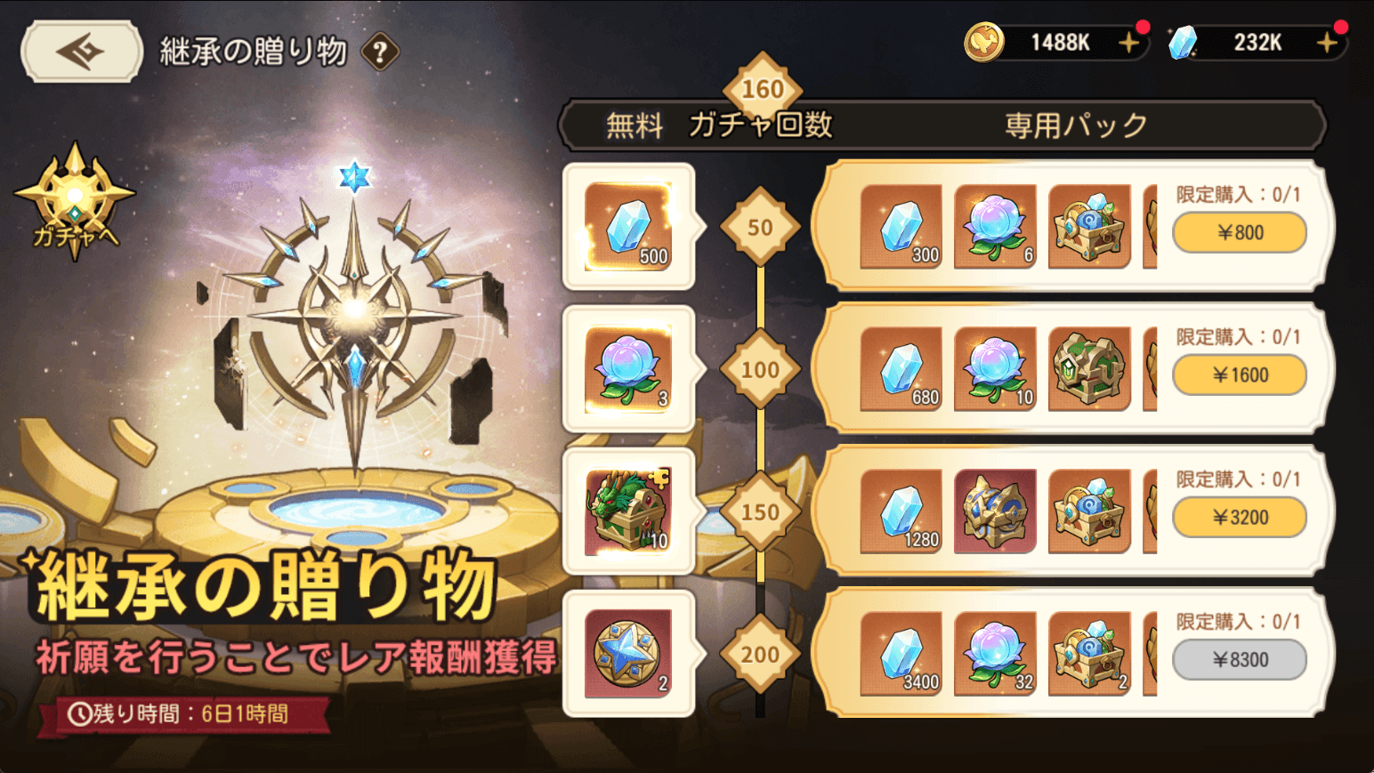 1、イベント期間中、祈願回数が指定数に到達すると、該当の報酬を獲得でき、パックの購入資格が解放されます。