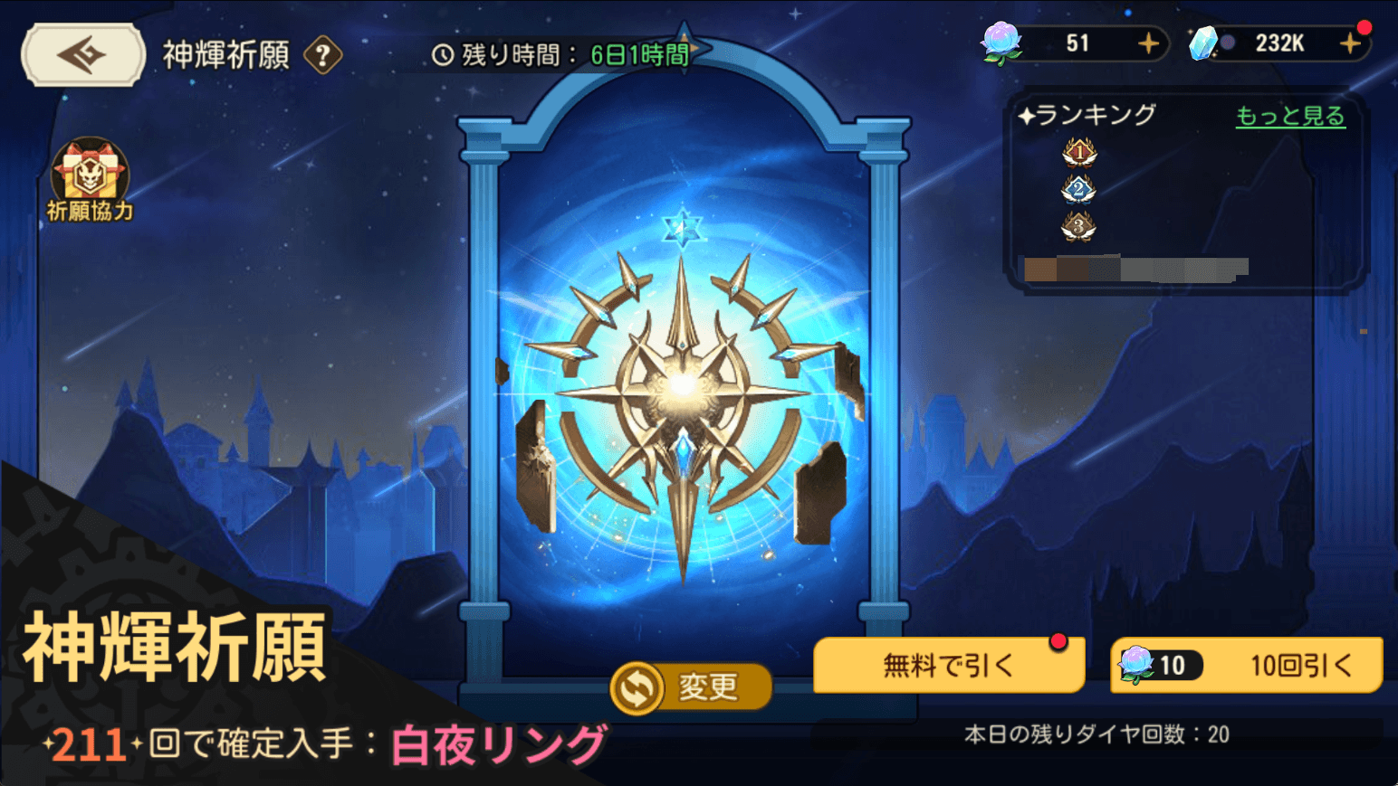 毎日ログインして召喚アイテム「願力の実」と「隕星石」を無料でゲット可能。